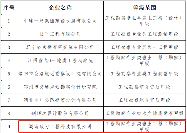 NEWS1月29日,中華人民共和國住建部發(fā)布《關(guān)于核準(zhǔn)2022年度第一批建設(shè)工程企業(yè)資質(zhì)名單的公告》,湖南致力工程科技有限公司喜獲工程(巖土)勘察甲級資質(zhì),為湖南省本次唯一一家取得該項(xiàng)資質(zhì)的單位,標(biāo)志著公司資質(zhì)建設(shè)取得重大戰(zhàn)略突破,形成了新的差異化發(fā)展優(yōu)勢,進(jìn)一步完善了特色鮮明的工程設(shè)計(jì)、勘察、咨詢、檢測、監(jiān)測全過程咨詢服務(wù)體系,夯實(shí)了公司專家(院士)工作站的技術(shù)基礎(chǔ),提升了公司核心競爭力和行業(yè)影響力。