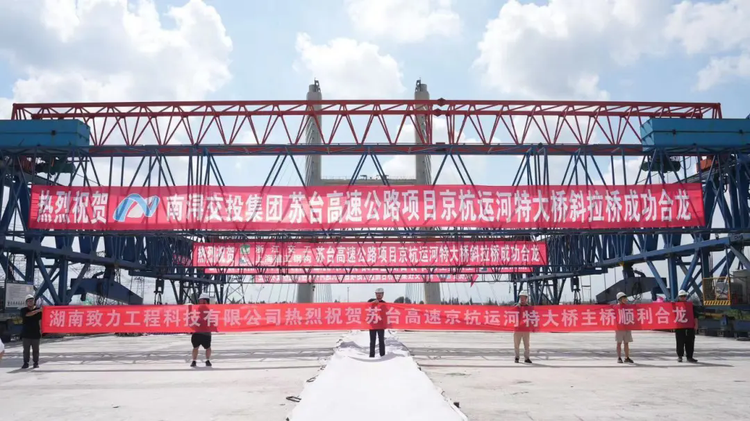 由湖南致力工程科技有限公司承擔施工監控及健康監測的湖州地區在建最大跨度斜拉橋—京杭運河特大橋主橋順利合龍……