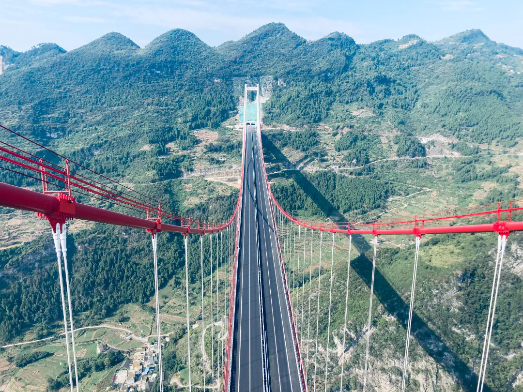 全球首座高低塔采用無樁基礎設計大跨度懸索橋、山區典型喀斯特地貌環境主跨近千米級懸索橋……